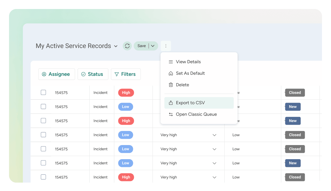 Export your service records to a CSV file from your cloud Service Desk. This is one of your most requested updates, and we’re happy to let you know that it will be available next week!